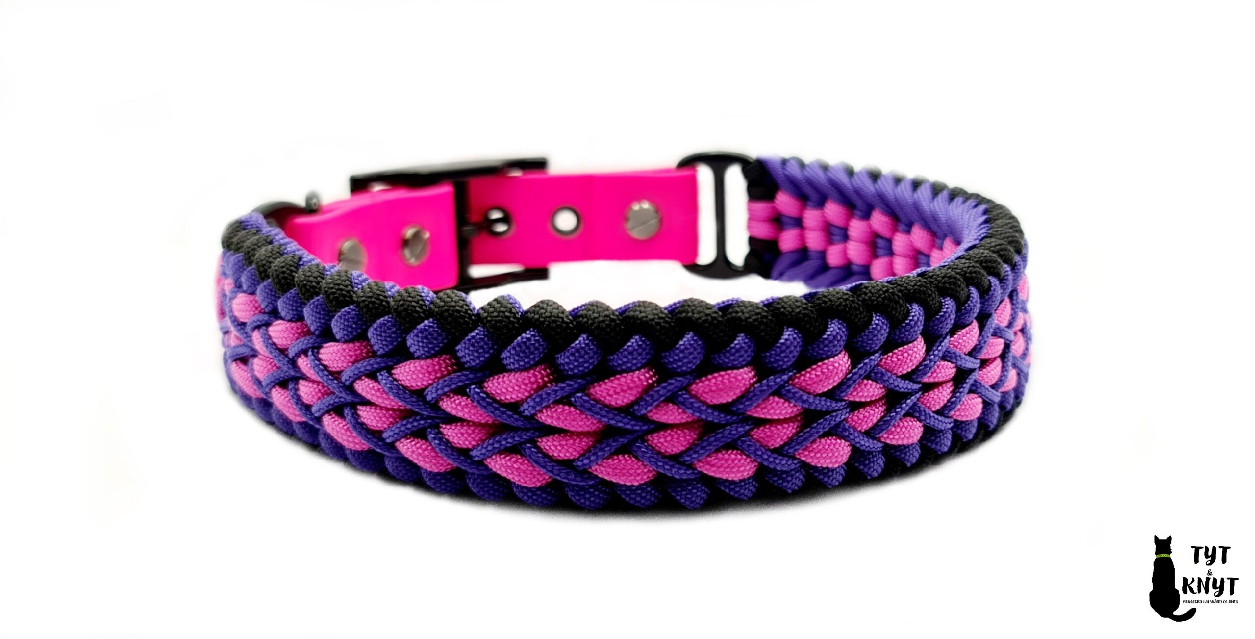 Fint halsbånd flettet i paracord med justerbardel i biothane.